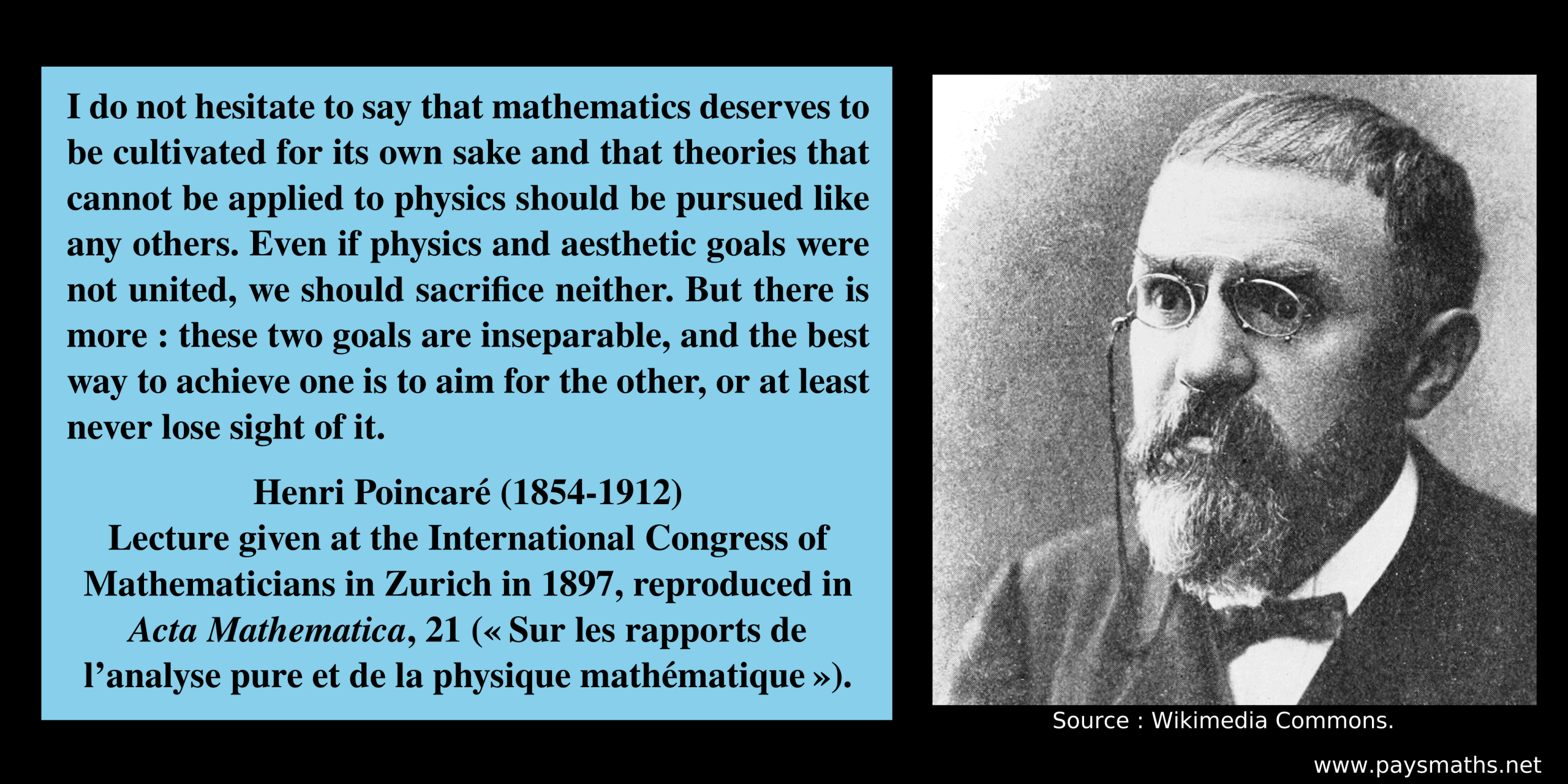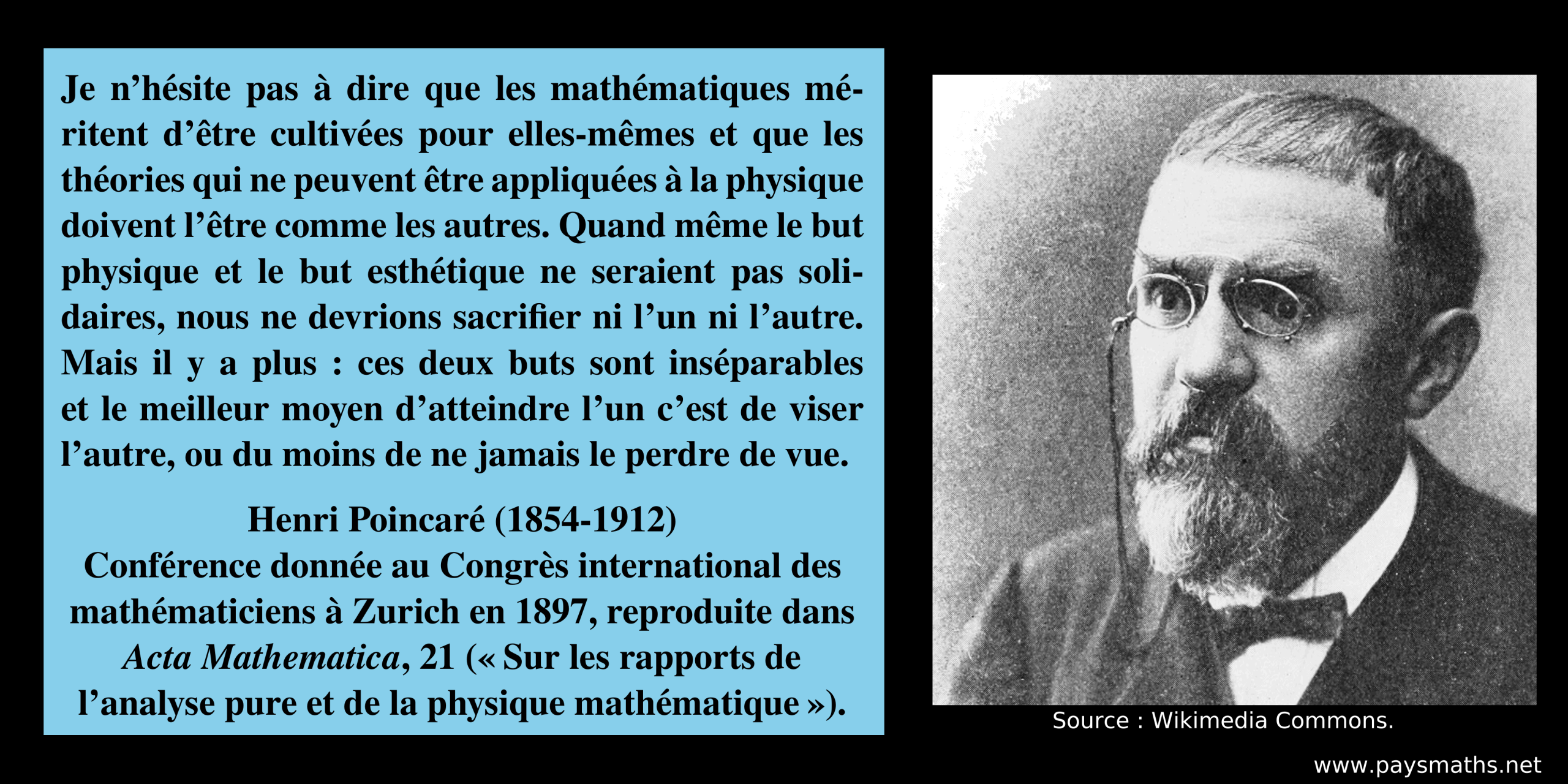 ![Portrait photographique de Victor Hugo, et une citation : "Les mathématiques ne sont pas une moindre immensité que la mer. [...] Quel est l’algébriste qui pourra jeter l’ancre dans le calcul infinitésimal ? Les sections coniques s’enfoncent dans l’azur tout aussi profondément que la voie lactée. L’asymptote et l’hyperbole sont des apparitions de l’incompréhensible sous une forme géométrique."](https://paysmaths.net/wp-content/uploads/2026/01/Victor_Hugo-03-1024x512.png)