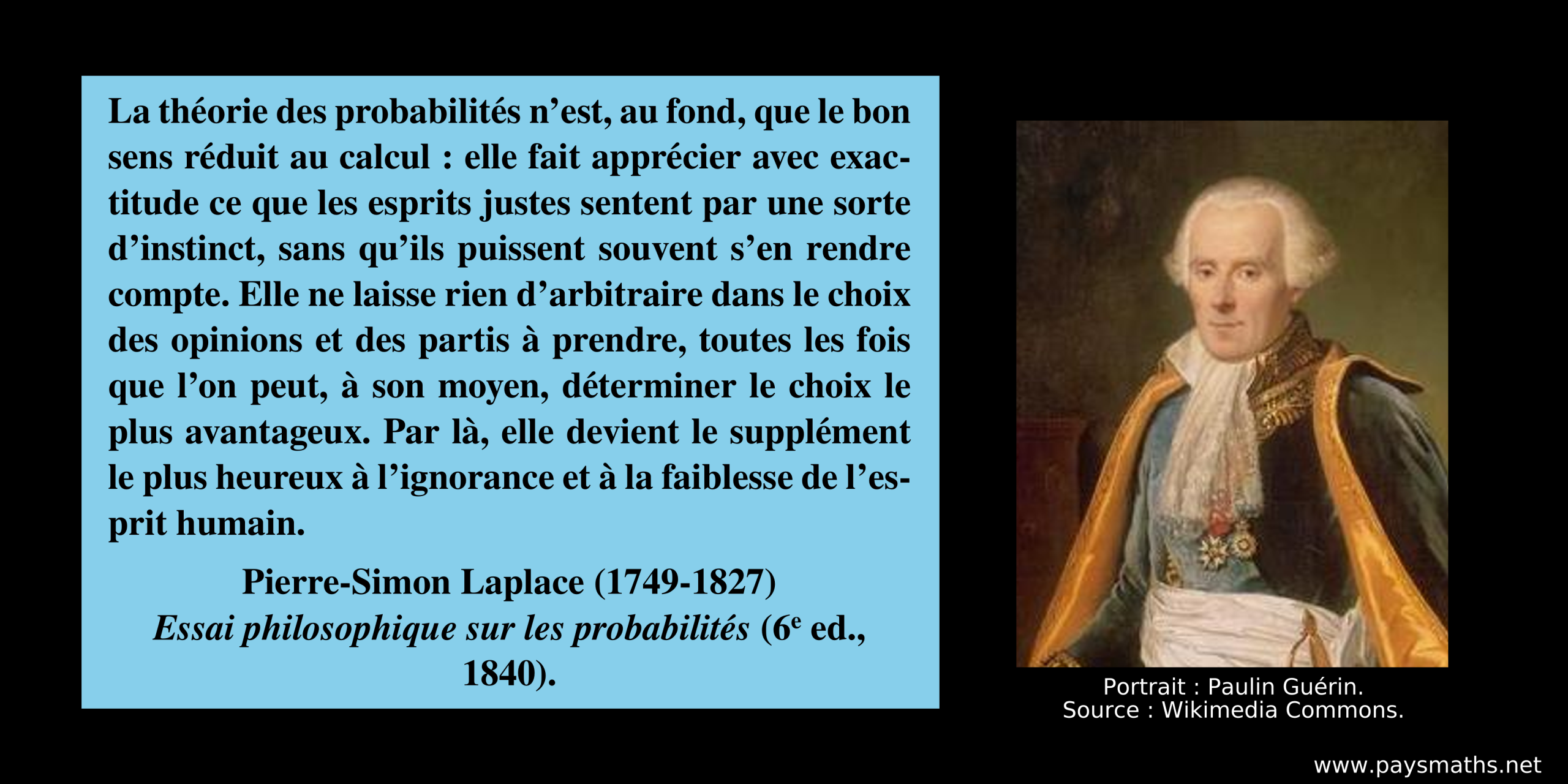 ![Portrait photographique d'Auguste Comte, et une citation : "Bornée à son vrai domaine, la raison mathématique y peut admirablement remplir l’office universel de la saine logique: induire pour déduire, afin de construire. [...] Sa réaction générale, plus négative que positive, doit surtout consister à nous inspirer partout une invincible répugnance pour le vague, l’incohérence, et l’obscurité, que nous pouvons réellement éviter envers des pensées quelconques, si nous y faisons assez d’efforts."](https://paysmaths.net/wp-content/uploads/2026/01/Auguste_Comte-02-1024x512.png)